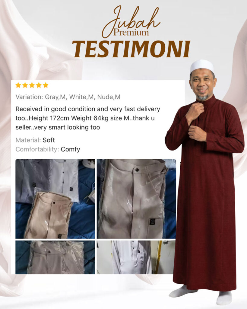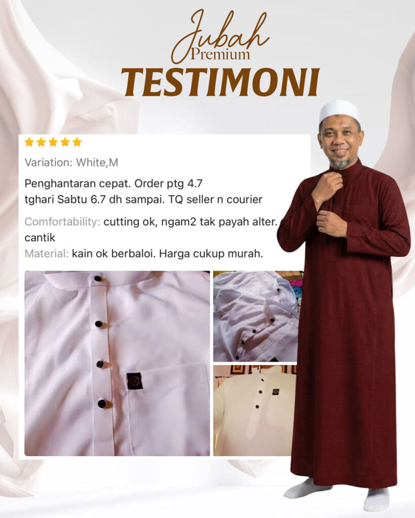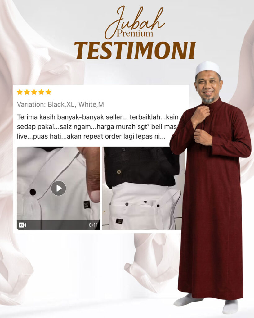 Warna & Size Jubah 1 Hitam (S)Hitam (M)Hitam (L)Hitam (XL)Hitam (2XL)Hitam (3XL)Putih (S)Putih (M)Putih (L)Putih (XL)Putih (2XL)Putih (3XL)Pink (S)Pink (M)Pink (L)Pink (XL)Pink (2XL)Pink (3XL)Purple (S)Purple (M)Purple (L)Purple (XL)Purple (2XL)Purple (3XL)Biru (S)Biru (M)Biru (L)Biru (XL)Biru (2XL)Biru (3XL)Maroon (S)Maroon (M)Maroon (L)Maroon (XL)Maroon (2XL)Maroon (3XL)Kelabu (S)Kelabu (M)Kelabu (L)Kelabu (XL)Kelabu (2XL)Kelabu (3XL)